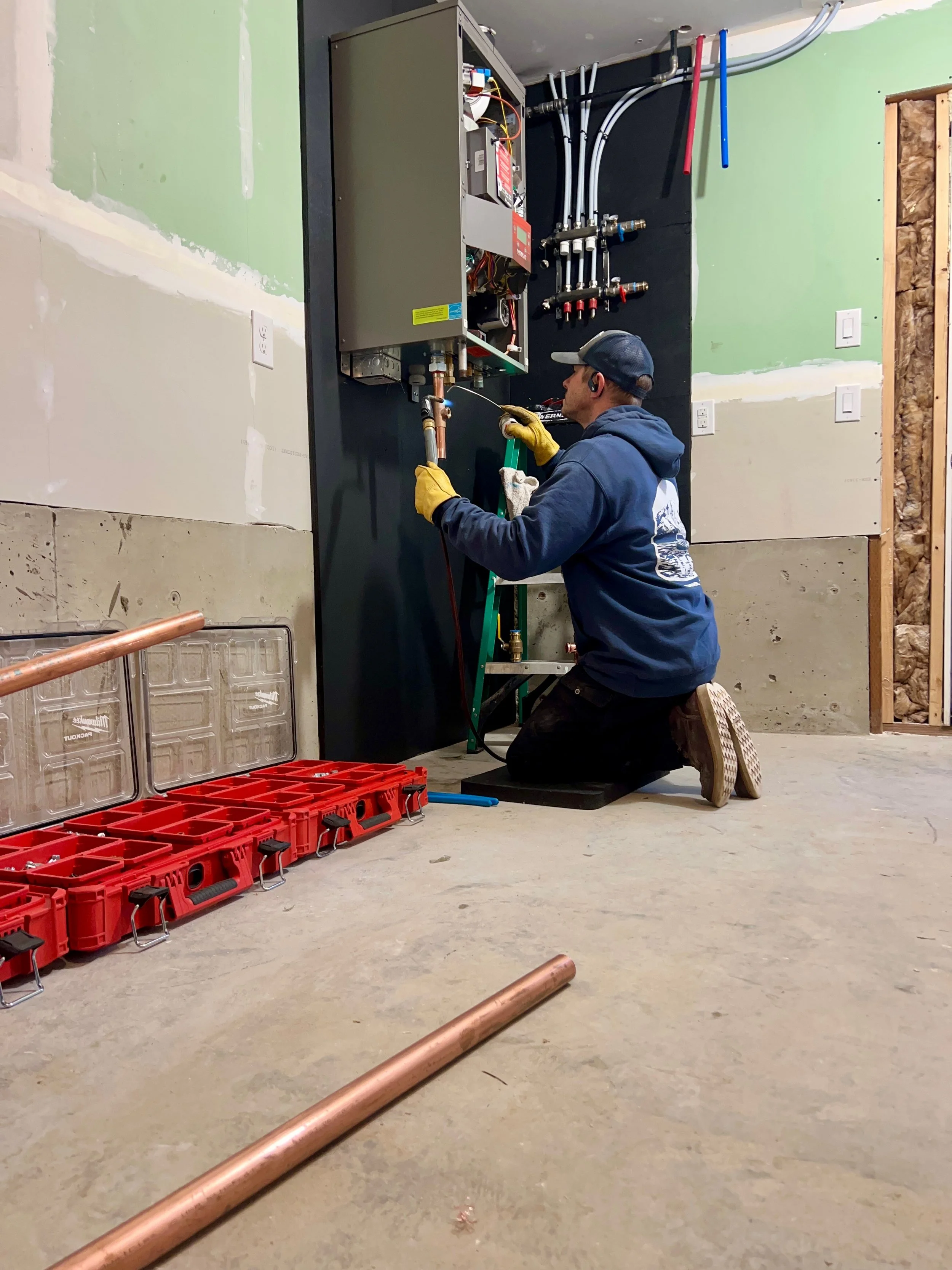 Complete plumbing systems, radiant heat, snowmelt, gas lines, and fixture installs.
